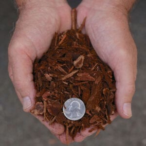 Our Bark Nuggets are small chunks of bark similar to our Mini-Pebbles, but slightly larger. Nuggets are slightly round in shape and have almost no fine particles, spreading easily to cover soil in raised beds, cover mounds, or in pots. This product holds well over time, lasting against the damp Northwest climate.
